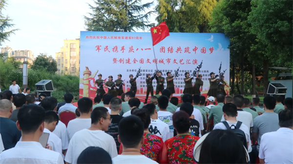7月31日晚,新城街道退役军人服务站联合北门社区举办“军民携手庆八一·团结共筑中国梦”文艺汇演。活动在安康军分区院内开展,市委常委、安康军分区司令员王军贤出席活动并致辞,安康军分区、市委政法委、市公路局、区委政法委、区退役军人事务局、新城街道有关领导干部、退役军人代表、群众代表共计200余人参加活动。