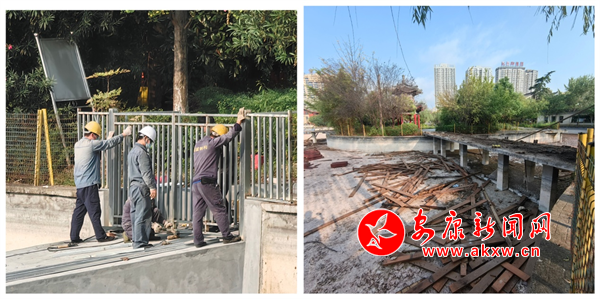 随着天气逐渐转凉,公园管理部门抓住时机,按照“湖面清、湖底清、湖岸清”整治要求,组织专业施工队伍对人工湖进行“清湖行动”,对湖底及岸边淤积的泥沙、杂物进行清理,湖面上出现老化、损坏的廊桥栏杆进行更换。