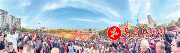 安康民俗讲究正月十二“出灯”。傍晚时分,水西门外人头攒动。群众从四面八方陆续向广场周围汇集,共同观看社火表演盛况。