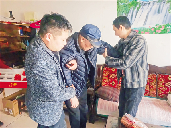 3月19日下午,天气格外晴朗,看着这样的好天气,大妈心想,得让大爷下楼晒晒太阳,呼吸呼吸新鲜空气,对身体肯定有好处。于是,她小心翼翼地搀扶着大爷,一步一步慢慢向楼下走去。大爷已经许久没有接触外面的世界,见到明亮的阳光,感受着温暖的日光洒在身上,他的脸上露出了久违的笑容。可谁也没想到,由于长时间没有晒太阳,身体一时无法适应,大爷突然感到一阵头晕目眩,紧接着便直接晕倒在地。大妈顿时慌了神,手足无措地蹲在大爷身边。就在这万分紧急的时刻,社区书记张鹏和几位工作人员路过巡查时,发现倒在地上的大爷和一旁惊慌失措的大妈,他立刻飞奔过去,一边跑一边大声说道:“别慌,我们来了!”