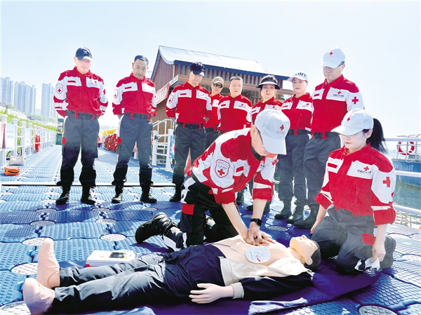 4月18日上午,汉滨区运隆水运有限公司联合安康市红十字会,开展2025年水路交通运输突发事件应急救援演练。