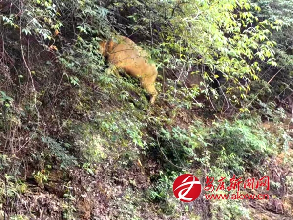 “猛然一看像只羊,仔细端详又不对,那脚长得跟牛蹄似的。”回忆起当时的场景,王开涛仍难掩兴奋。消息一经传开,镇领导高度重视,即刻组织宣传、林业干部赶赴现场。据王开涛介绍,6月27日上午7时40分许,他正驱车前往15组组长家,准备带领护林员开展巡山工作。行至土房沟路段时,路边护栏外一个形似“羊头”的身影突然闯入眼帘。王开涛急忙刹车,就在停车的刹那,只见这个“羊头牛脚”的神秘动物利落地跃过护栏,“咚”地落在路面,还冲着他发出一声低沉的“嗷”叫,紧接着身形一闪,以敏捷的身姿窜上沟崖。电光石火间,王开涛迅速掏出手机,接连按下快门,成功抓拍下3张珍贵画面。