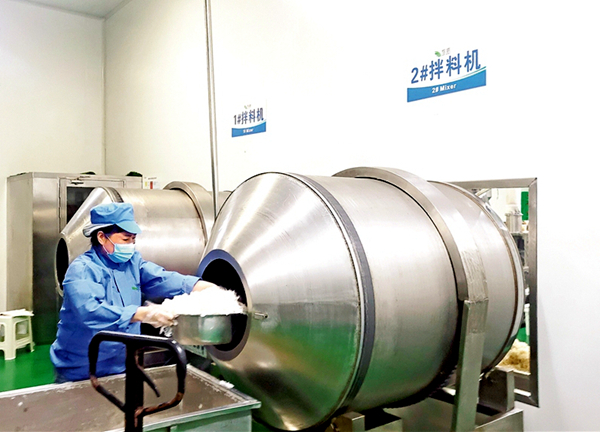 走进五里工业集中区富硒食品产业园的陕西安康悠源食品有限公司(以下简称“悠源公司”),呈现出一派生产加工繁忙的景象。在调味间,调味师张萍一丝不苟地称量、拌料。根据不同产品,她将食盐、白糖等各种调味品严格按比例加入。“就和在家做菜是一样的,干净卫生是基础。还要把味调好,大家才愿意吃。”张萍说。