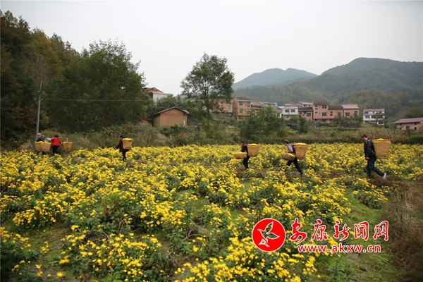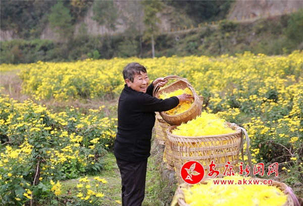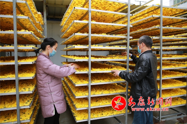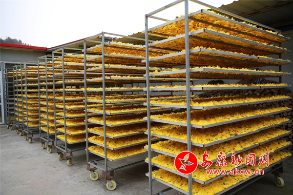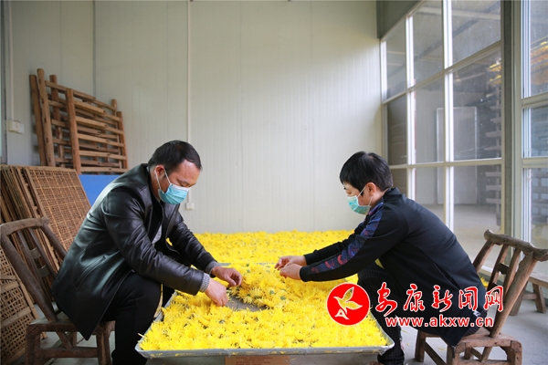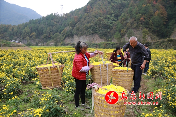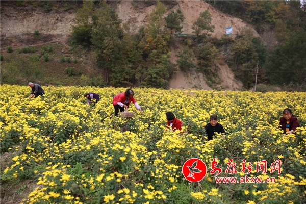 10月26日,在安康市汉滨区沈坝镇花红村,农民们正抢抓晴好天气,采摘、分拣、烘干金丝皇菊。放眼望去,金灿灿的菊花点亮深秋田野,成为一道美丽的风景。2014年以来,该村根据本地土壤、气候特点,采取 " 公司 + 合作社 + 农户 " 的方式,引进能人,发展特色菊花种植50余亩,带动30多名村民务工增收。(通讯员 吴亚君 文/图)NKC安康新闻网