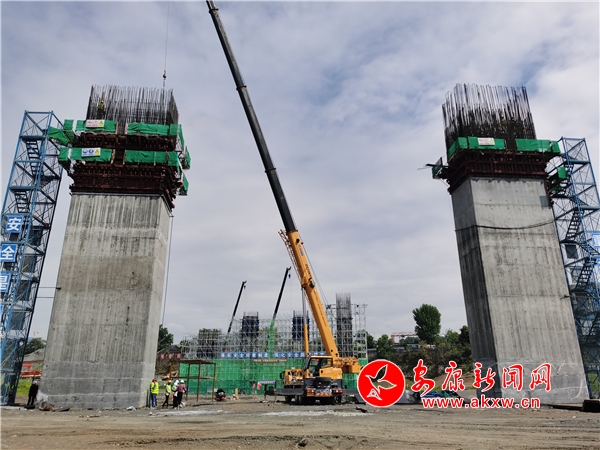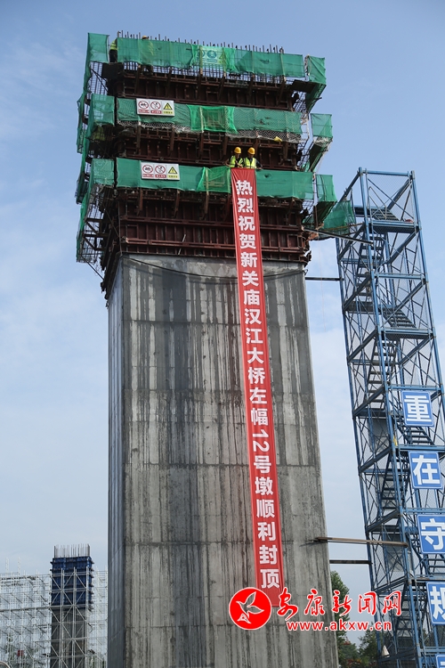 6月22日,新关庙汉江大桥左幅12号桥墩封顶,该组右幅桥墩也将于明日封顶。 (通讯员 郑才林)