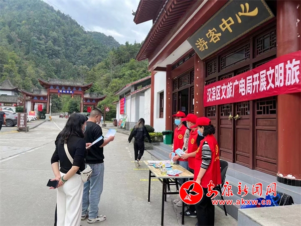 为增强游客的文明旅游意识,近日,汉滨区文旅广电局组织志愿者们在双龙景区现场向市民游客发放文明旅游宣传折页,宣传讲解文明旅游相关知识以及应当遵循的行为规……