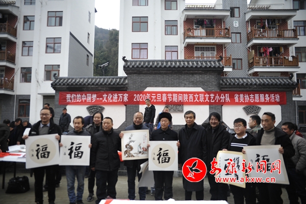 本网讯 (通讯员 惠星 郭仲艳)1月7日,“我们的中国梦”——文化进万家陕西文联文艺小分队省美协志愿服务活动走进汉滨区双龙镇,为这里的群众送上春联……