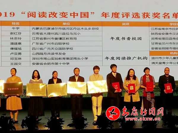 汉滨区培新小学荣获2019“阅读改变中国”年度书香校园称号