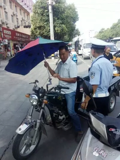 汉滨交警严厉整治加装遮阳伞违法行为