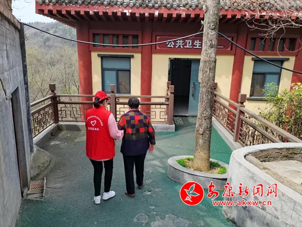 2月10日,农历正月初一,图为香溪洞风景名胜管理局志愿服务队志愿者搀扶行动不便的游客到景区公共卫生间。(记者 赵漪湉)……