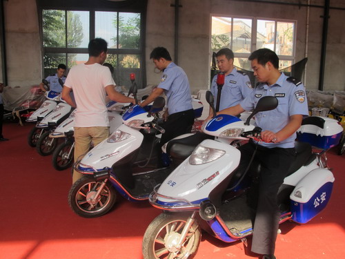 据秦凤公司技术员沈杰介绍,这6辆警用电动车有别于市场上销售的家用电动车,该车辆配件全系公安专用材料组装而成。黏贴有警用徽章、公安图标字样,配备了专用警灯、喊话器及装备箱等特殊材料。