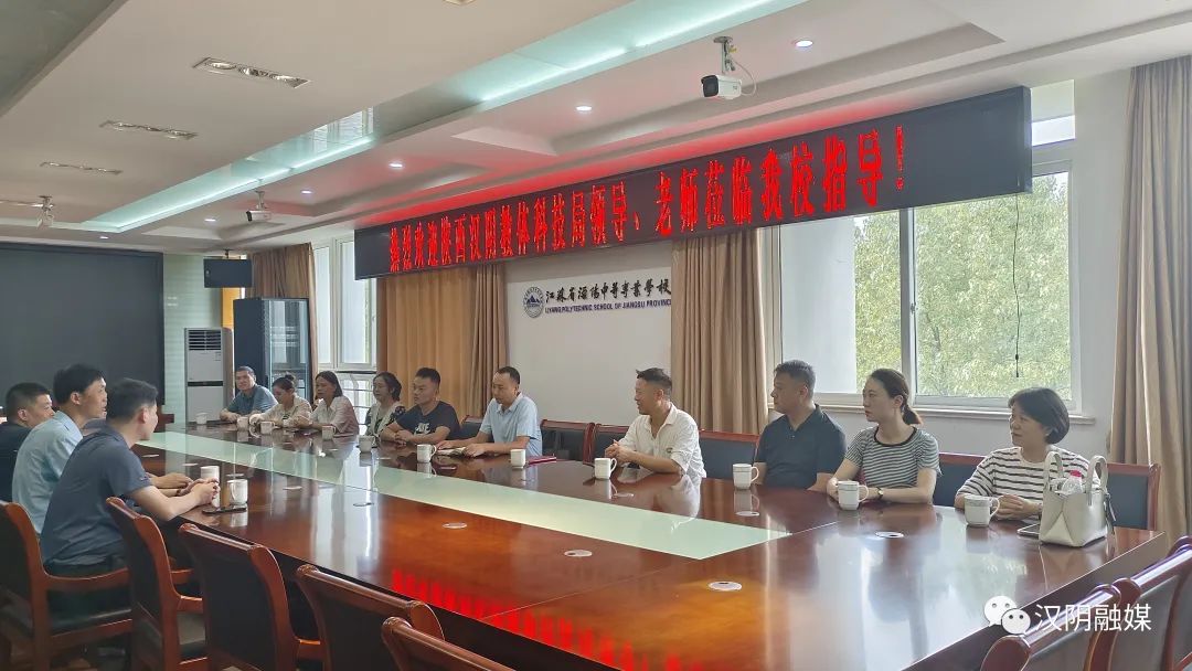 随后,溧阳市教育局和溧阳中专相关负责人、汉阴县全体跟岗学习老师及带队人员、汉阴籍在溧阳中专就读学生共同在江苏省溧阳中等专业学校进行座谈。座谈会上,强调了苏陕教育协作的重要意义,介绍了此次参观交流及跟岗学习的相关情况。溧阳中专副校长详细解答了汉阴县带队领导提出的在职业教育发展过程中关于师资培养、专业设置、学生管理等方面的疑问。对8名跟岗学习老师提出了具体要求,对在溧阳中专就读的汉阴籍学生进行了慰问。