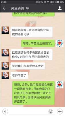 据该校校长张纪平介绍,现在的家庭大多是独生子女,孩子表现为以自我为中心,生活自理能力差,不热爱劳动,有时还会出现挑吃捡穿、顶撞长辈的情况。自从“德育作业”推行后,在学生良好行为习惯培养方面比单纯的说教效果要好,学校的校风学风得到明显好转,学生的思想道德素质显著提高,对孩子的成长帮助很大。不少家长把孩子完成“德育作业”的瞬间拍照发给了老师,还发朋友圈,记录自己孩子成长的精彩时刻,受到广大群众和家长的连连点赞。(通讯员 韩胜平 卓小瑜)