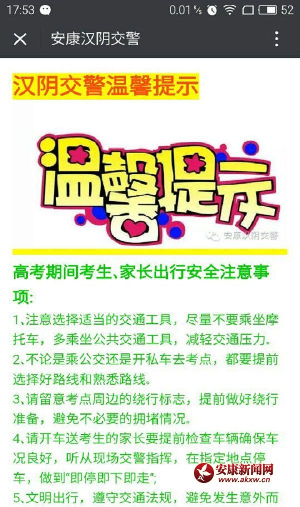 汉阴交警在此祝愿广大莘莘学子圆梦高考,金榜题名!祝各位驾驶员朋友及交通参与者生活愉快,平安出行!