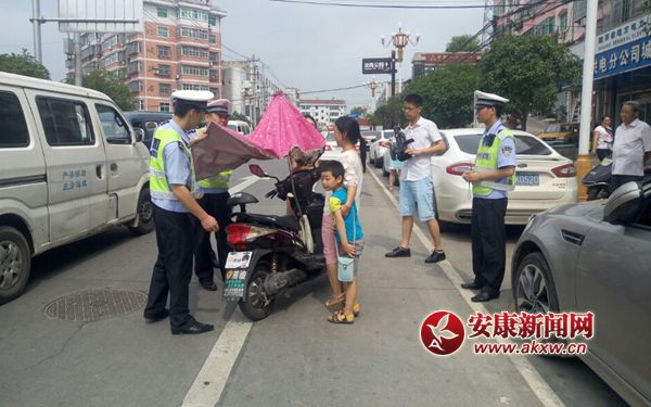 汉阴交警积极开展摩托车、电动车非法安装遮阳伞集中整治工作