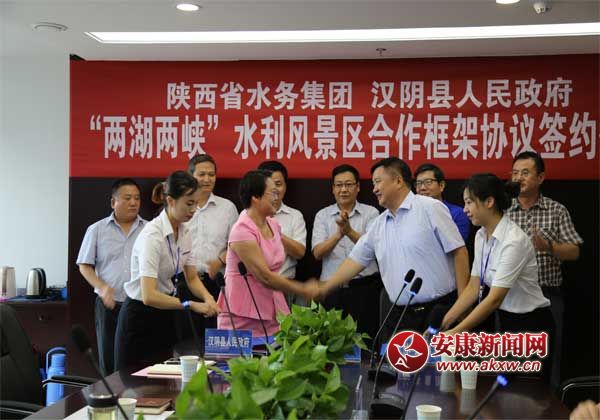 安康新闻网讯(通讯员 秦小娟 刘江 王丽萍)8月25日早上,在陕西省水务集团21楼会议室,所有的目光都聚焦在汉阴县县长刘飞霞与省水务集团董事长王瑜身上。在大家的共同见证下,汉阴县与省水务集团签下逾十亿元的两湖两峡建设项目。