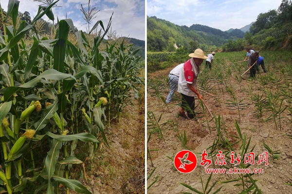 安康新闻网讯(通讯员 杨波 王文艺)盛夏时节,走进双乳镇玉河村连片种植甜玉米基地,连片的甜玉米傲然挺立,甜玉米吐露天花,金黄的玉米长满新须,整齐规范的黄姜基地一排排、一行行,长势喜人,人行在欢快的舞动手中的工具,除草、施肥,好一幅丰收的景象。
