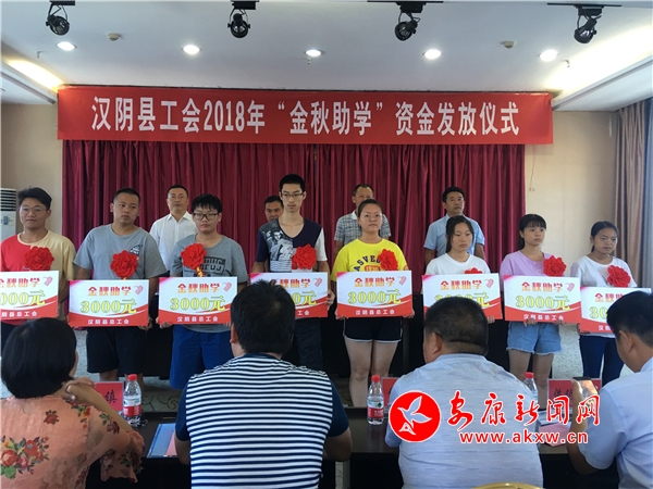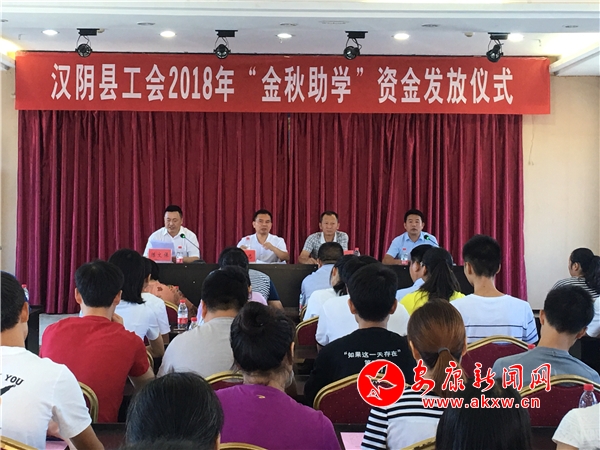 安康新闻网讯(通讯员 方靖 柯艳)8月29日,汉阴县总工会举行2018年“金秋助学”活动助学金发放仪式,为该县今年考上大学的62名困难职工、农民工家庭大学生发放了3000元的一次性资助,帮助他们走进大学继续深造学习,同时倡导各学子家庭简办升学礼,不办升学宴,大力弘扬“诚、孝、俭、勤、和”新民风,鼓励受助学子克服困难,努力学习,立志成才。县文明办、教体局,以及部分镇和系统工会领导出席发放仪式。