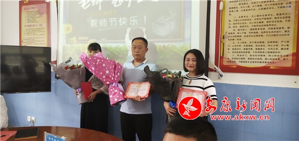 首先,双河口镇副书记李轶作了热情洋溢的讲话,他代表双河口镇党委政府对全体教师致以节日的美好祝愿,对一年来奋战在教育一线的教师和全体教职工致以节日的亲切慰问,对涌现出的先进单位和优秀个人表示热烈的祝贺。双河口镇长唐波宣读了《中共双河口镇委员会关于2017----2018学年度获得教育先进集体、先进教育工作者、模范班主任、优秀教师名单的决定》,大会现场响起一片热烈的掌声。与会领导为获奖教师们颁发了荣誉证书,礼仪小标兵为受表彰的老师们送上了节日祝福和鲜花,活动现场想起了雷鸣般的掌声,全体教师沉浸在一片欢乐的海洋。