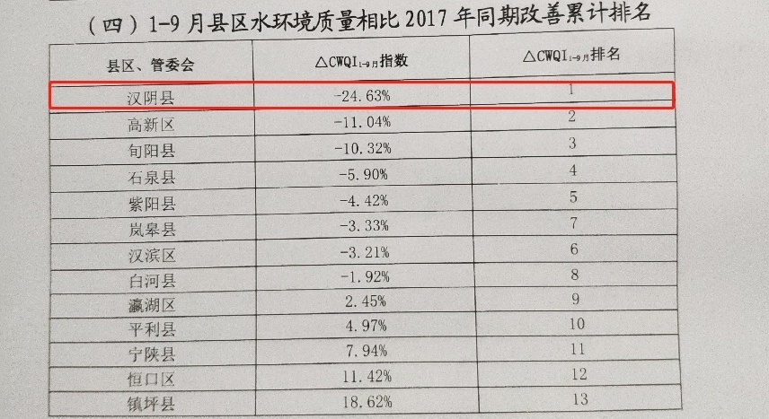 据安康市三季度环境质量通报,该县2018年1至9月主要河流汉江汉阴段水质持续保持为地表水二类,月河汉阴段从地表水三类提升为二类,为县域环境质量提升补齐了短板。