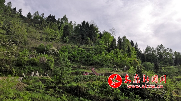 四月的磨坝万木葱茏,苍翠欲滴,晴空万里,贫困户曹家学的心情也跟这天气一样晴朗,因为他企盼已久的产业路终于动工了。