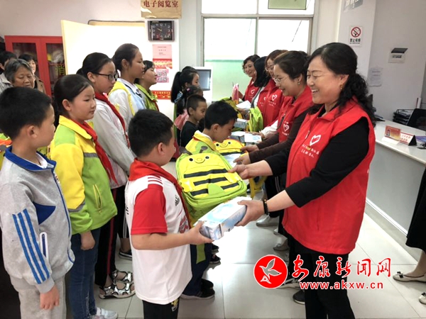 正午12点,志愿者早已集合在了社区大厅,把准备好的书包、牛奶等物品摆在了桌子上,热情洋溢的迎接16组孩子和家长们的到来。大家坐下后,志愿者们关切地询问孩子们的学习和生活情况,向孩子们表达了节日的祝福,并送上了节日的礼物,抱着好看的新书包,孩子们开心不已。