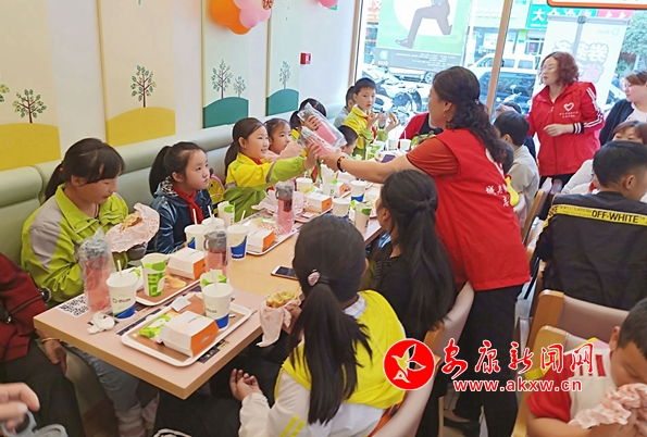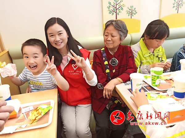 爱心亲子餐,志愿者们为家长和孩子准备好午餐,看他们吃的津津有味的样子,大家心里特别的高兴。