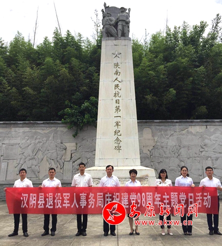 本网讯 (通讯员 方祎峰)6月30日,为庆祝中国共产党成立98年周年,增强党员干部责任感和使命感,激发新担当、新作为,汉阴县退役军人事务局组织全体党员干部开展庆“七一”主题党日活动。