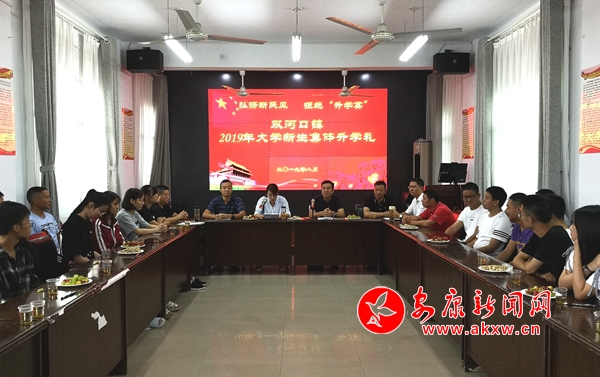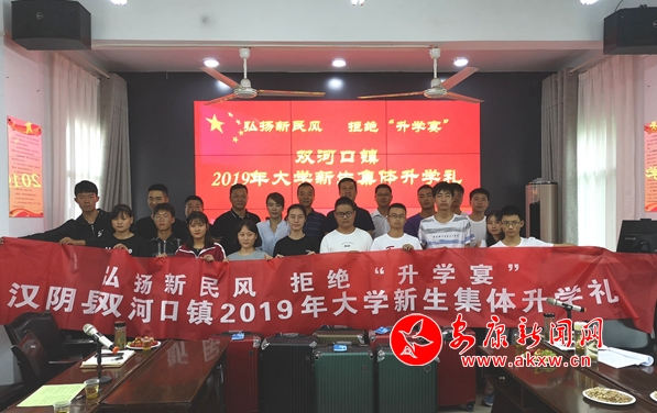 本网讯 (通讯员 黄伟)十年寒窗磨一剑,高考角逐跃龙门。8月9日,汉阴县双河口镇组织举办2019年大学新生集体升学礼,进一步弘扬新民风,拒绝“升学宴”,倡导勤俭节约,知恩感恩的社会新风。