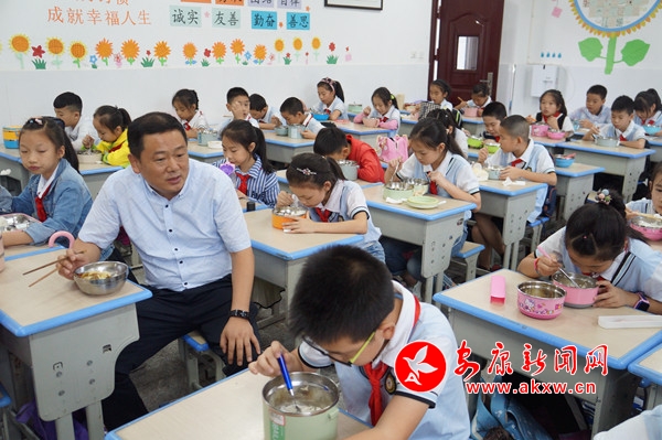 “好香啊,真好吃”,为让学生吃得营养健康,该校特意在早餐准备了西红柿鸡蛋汤和热乎乎的馒头,午餐是鸡块烧土豆、炝大白菜和米饭,孩子们一边品尝着香喷喷的饭菜,一边连连称赞。在老师的教育引导下,孩子们认真用餐,井然有序。同时,该校班子成员还分别深入到各年级进行陪餐,及时了解饭菜质量和学生用餐情况。