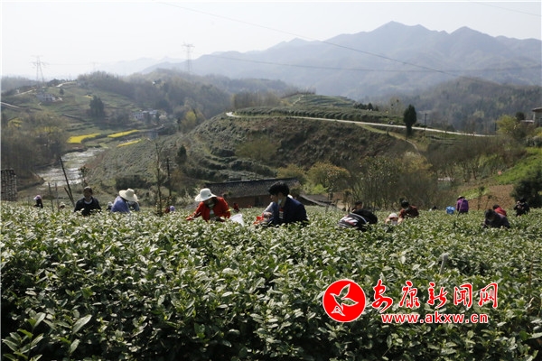 为做好防疫工作,群众进园必须戴好口罩,每天测量体温两次,并对茶篓集中消毒,称重计量错时进行,尽量减少人员接触,在确保安全的前提下有序采摘茶叶。“受疫情影响,暂时不敢出门,现在在村上摘茶,每天能挣120块钱左右,我觉得这个工作还不错,钱赚的也放心,离家又近还能照顾家人。”忙着采茶的吴大姐说道。