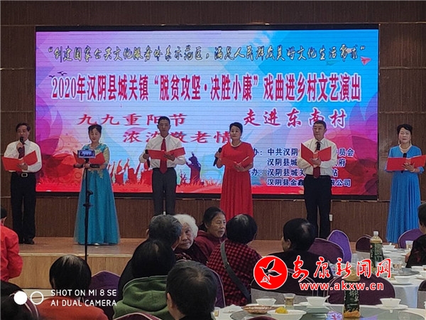本网讯 九九重阳节,浓浓敬老情,汉阴县城关镇东南村在老年节来临之际,组织全村60岁以上200余位老人参加重阳敬老活动,邀请老人一起赴宴共享佳节,金秋艺术团还为老人们献上了精彩的歌舞表演。K66安康新闻网