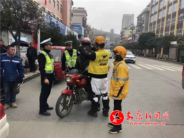 本网讯(通讯员 刘安正 蒋晓桂)为进一步提升广大电动自行车、摩托车骑乘人员的交通安全意识,督促外卖行业驾驶人自觉养成佩戴安全头盔的良好习惯,遏制冬季道路交通事故的发生,积极促进社会各界人士共同关注交通安全。11月25日,汉阴县公安局交警大队城区中队联合美团外卖在北城街、凤凰广场红路灯路口设置了“一盔一带”交通违法行为劝导点,大力开展“一盔一带”警企联合劝导日活动。