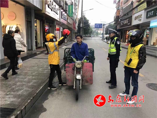 活动中,中队民警首先向美团外卖骑手就近期发生的典型事故案例详细讲解了佩戴安全头盔的重要性,教育外卖企业驾驶人只有自觉遵守交通安全法律法规,才能有效预防和减少道路交通事故的发生。并组织了辖区民警及骑手代表对不戴头盔、不正确佩戴头盔、闯红灯、违法载人的过往电动车、摩托车驾驶人进行了交通违法行为劝导,用通俗易懂的语言劝导广大交通参与者提高安全警惕,规范使用头盔等减少出行风险。劝导过程中,美团外卖骑手代表还用自己的亲身事故经历向群众讲解了出行佩戴头盔的必要性,手把手教群众以及“一老一小群体”如何正确佩戴头盔。