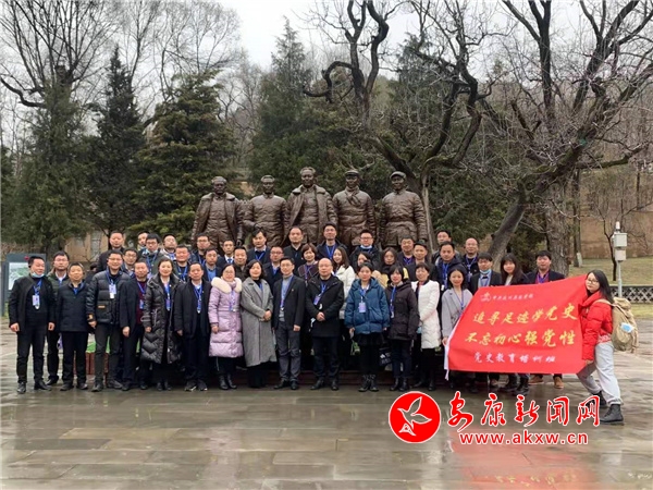 寻领袖足迹,深悟革命精神。在延川县委党校干部的带领下,先后实地参观了杨家岭、枣园革命旧址,延安革命纪念馆、延安宝塔山等红色景区。跟随着讲解员地深情介绍,一路追寻革命先烈的奋斗路程,一幅幅珍贵的照片、一段段感人的故事,把大家的思绪拉回到了革命年代,感受延安抗战时期惊心动魄、艰苦卓绝的革命历程,深刻领略老一辈革命家的风采,仿佛置身于当年战火硝烟和革命先辈浴血奋战的情景。在枣园、杨家岭等当年中共中央所在地旧址,参观了毛泽东、刘少奇、周恩来、朱德、任弼时、彭德怀等老一辈革命家的旧居和中央大礼堂等地,亲眼目睹了新中国缔造者们当时生活和战斗过的环境,身临其境地感受改变历史的精神力量。