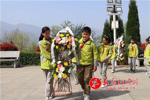 伴随着《鲜花曲》激昂深情的旋律,少先队员们缓步走向革命烈士纪念碑前,将一个个花篮、一朵朵菊花庄严的敬献在纪念碑前,全体师生向革命烈士默哀一分钟,并向革命烈士三鞠躬。在大队辅导员的带领下,全体队员重温入队誓词,铮铮誓言在纪念碑上空回荡,队员们顺时针方向绕革命烈士纪念碑一周,满怀崇敬来瞻仰浮雕,祭奠英烈活动圆满结束。