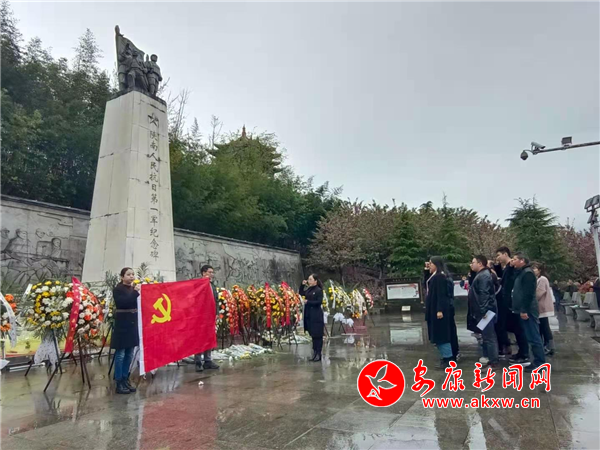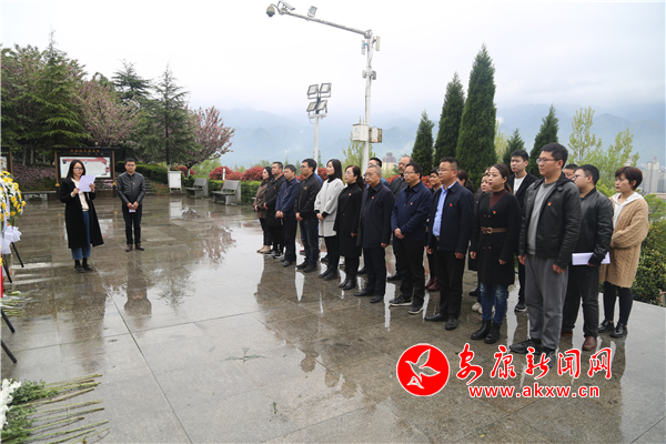 全体党员干部在陕南抗日第一军纪念碑前,举行默哀仪式,敬献花篮,表达缅怀之情。随后聆听革命先烈士的光辉事迹。在鲜红的党旗下,全体党员重温入党誓词。最后,党员代表发言,告慰先烈英灵。