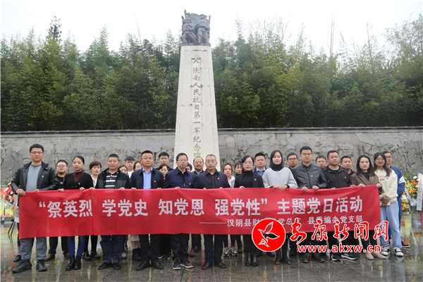 本网讯(通讯员 吴梦玲)为继承先烈遗志,弘扬民族精神,4月2日, 汉阴县委编办党支部联合财政局党总支在龙岗陕南抗日第一军纪念碑前开展“祭英烈 学党史 知党恩 强党性”主题党日活动,全体党员干部参加。