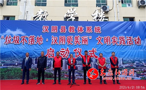 本网讯(通讯员 兰本波 李永涛)为扎实推进干净、畅通、宜居、文化“四个城市”建设,打造干净、整洁、文明的卫生环境,提升广大师生文明素质,4月21日,汉阴县教体系统举行“垃圾不落地·汉阴更美丽”文明实践活动启动仪式。汉阴县政府副县长刘济兵出席活动,汉阴县委宣传部、县教体科技局、县创建办、县城管执法大队、城关镇分管领导和城区中小学及幼儿园主要负责人及汉阴县初级中学全体师生2400余人参加活动。