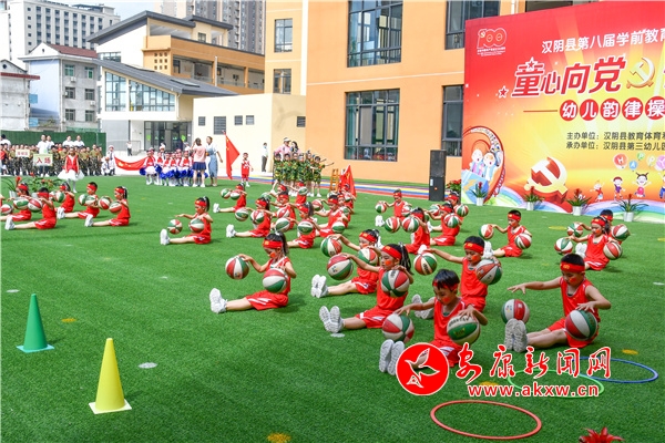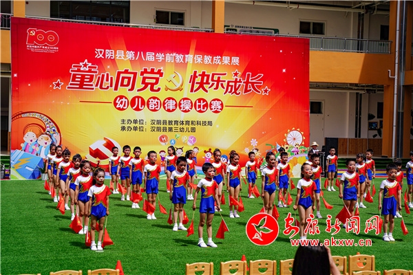 本网讯(通讯员 汪付艳 王灿)为庆祝中国共产党百年华诞,充分展现幼儿保教保育成果,5月28日上午,由汉阴县教体科技局主办、第三幼儿园承办的汉阴县第八届学前教育保教成果展“童心向党 快乐成长”幼儿韵律操比赛在汉阴县第三幼儿园举行。