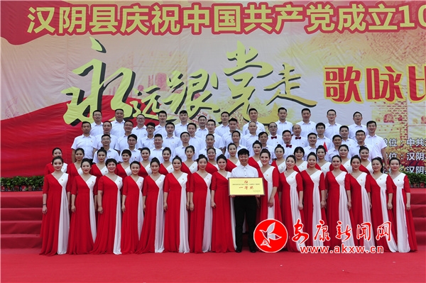 汉阴县教体科技局高度重视此次歌咏比赛,从合唱团成员遴选到比赛歌曲的确认,再到排练都全力以赴;每一位合唱团成员都以积极饱满的状态投入到本次合唱比赛中,积极克服重重困难、在兼顾工作及下班之余反复练习,最终以总分97.44分的成绩夺得比赛第一名。