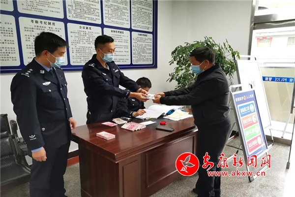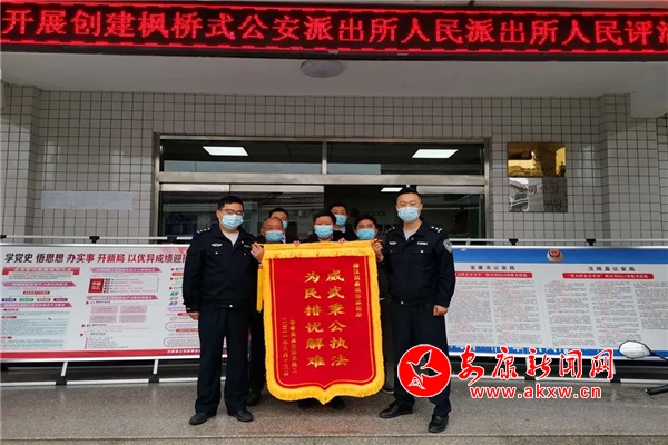 近日,在劳动监察部门执法人员见证下,城郊派出所代为兑付了伍某拖欠的李某、喻某等农民工工资11万余元。拿到辛苦劳动的“血汗钱”,在场农民工激动不已,自发向城郊派出所赠送一面“威武秉公执法 为民排忧解难”锦旗。