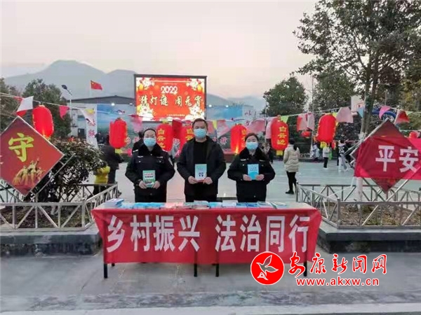 按传统习俗,过完元宵佳节年就过完了,外出务工返乡的群众将会开启新一年的务工历程。该镇抓住三元村乡村文化理事会组织的元宵灯谜晚会活动的有利时机,在戏曲开场前,登台向群众宣传《民法典》、《法律援助法》、《家庭教育促进法》;设立宣传台,把《民法典》、《农村法律实用手册》、平安建设、扫黑除恶、全民反诈等宣传资料发送到群众手中;对前来咨询的群众耐心解答群众疑惑。该次普法宣传,共计开展普法宣讲一次,发放宣传资料300余份,解答群众咨询6人次。