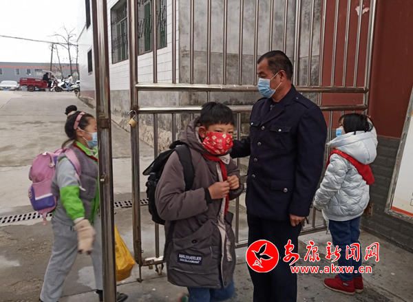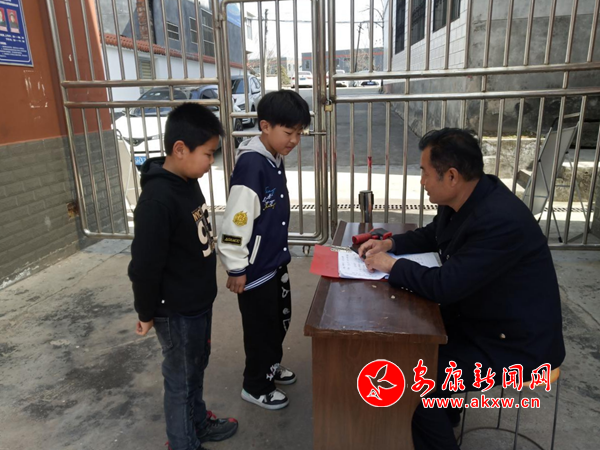 王怀军给进入校园的学生测体温