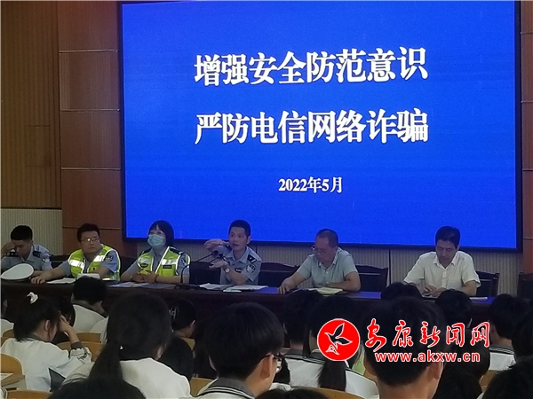 活动中,城关派出所教导员以通俗易懂的语言,以真实鲜活的案例为切入点,结合青少年学生的年龄段及心理特点,深入浅出地讲解了违法犯罪对本人、家庭、社会的危害性。随后,民辅警向广大师生发放预防电信诈骗宣传告知书,并向师生详细解读了当前多种电信诈骗犯罪的手段及预防措施,向全校师生讲解如何识诈、防诈,提醒广大师生在日常生活中提高安全防范意识,并通过身边发生的典型案例告诫同学们,不要轻易相信陌生人,不要随便输入验证码等,遇到可疑情况要及时告诉家长和老师。最后,民辅警邀请老师们积极下载“国家反诈中心”APP,并将反诈信息和APP下载方式发到班级群里,以学生带动家长、以校园辐射家庭,力争达到“宣传到每一个学生、平安每一户家庭”,切实筑牢防电信诈骗的安全“防火墙”。