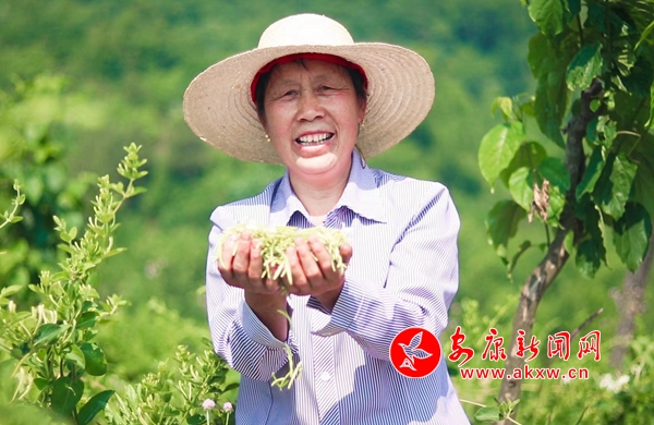 “我们去年就在这里摘金银花,今年我们又来这里摘,老板也对我们好,我们也很满意,一天能赚100多块钱,我就住在这附近的,孙子也照看了。”三柳村村民谢千翠说。