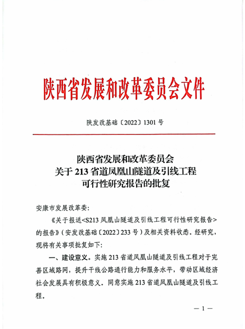 近日,省发改委下发文件,对213省道凤凰山隧道及引线工程可行性研究报告予以批复,同意213省道凤凰山隧道及引线工程实施,标志该项目进入实质许可阶段,为今年开工奠基坚实基础。ezU安康新闻网