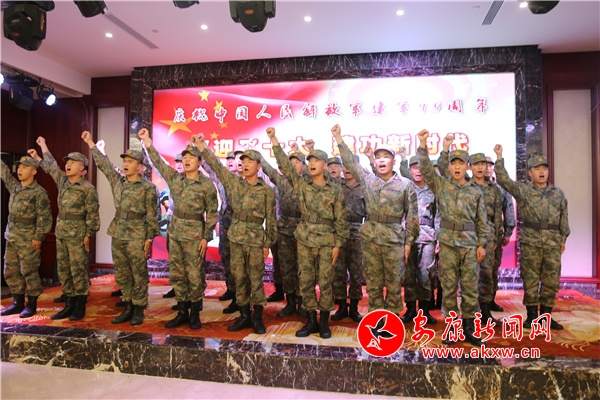 活动中并有军人们自创、自导、自演的擒敌拳、诗朗诵等10多个精彩节目。老兵、新兵在一起激情澎湃的同唱《中国人民解放军军歌》,共叙军人情怀,共话鱼水深情,畅谈梦想和作为,将为民服务的思想和军人精神凝成坚不可摧的精神志向,一起传承爱国爱民的红色基因。