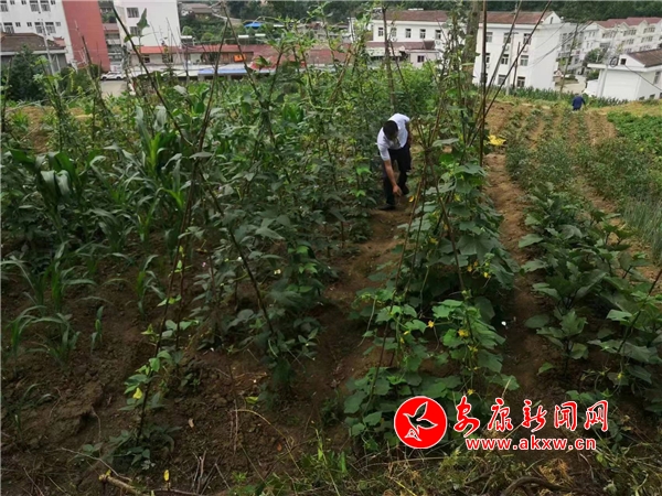 盛夏时节,薄薄细雨中的铁佛寺镇,一片安静祥和,而在集镇社区新开辟的小菜园中呈现出了一派热火朝天的耕作景象。