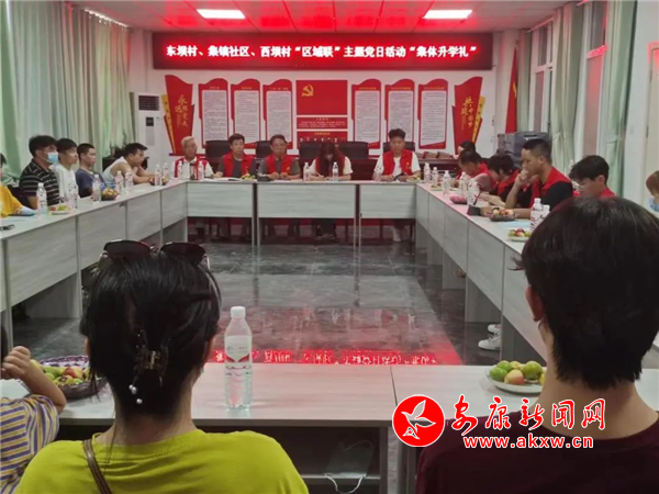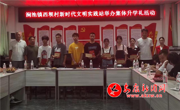 本网讯(通讯员 陈小平 金关平)为弘扬传统美德,倡导文明新风,西坝村、集镇社区、东坝村新时代文明实践活动“区域联”,以实际行动“践行新民风,拒绝升学宴”。8月17日下午,以“区域联”主题党日活动为契机,在西坝村新时代文明实践站为考入大学的18名(西坝村8名、集镇社区2名、东坝村8名)准大学生举办了一场意义深远的集体升学礼活动。
